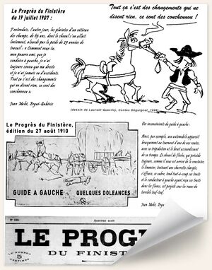 Chaque article publié est catégorisé dans un ou plusieurs espaces thèmatiques ("Archives", "AudioVisuel", "Biblio", "Personnalités", "Breton", "Déguignet", "Journaux", "Mémoires", "Papetiers", "Patrimoine", "Plans&Cartes", "Villages").