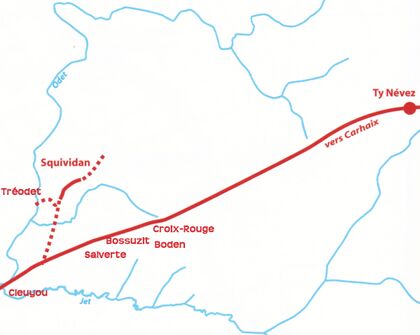 En 2011, lors d'une intervention archéologique par Jean-Paul Le Bihan et Jean-François Villard avant l'ouverture de la zone d'activité voisine du Squividan, un tronçon de voie antique secondaire y est découvert : « Un diagnostic effectué sur les hauteurs de Squividan dominant la vallée de l'Odet avant son confluent avec le Jet mit en évidence des structures rurales gallo-romaines ».