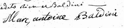 Marc Antoine Baldini, fils de Bartélémi Baldini et de Marie-Jeanne Simoni, est né en 1740 à Lucca, ville de Toscane, entre Bologne et Pise. Très tôt il fréquente les écoles de peinture de la ville et apprend le métier de doreur.