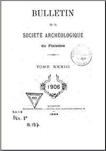 Edition : | Société Archéologique du Finistère | Publication : | Bulletin de la Société Archéologique du Finistère, XXXIII |